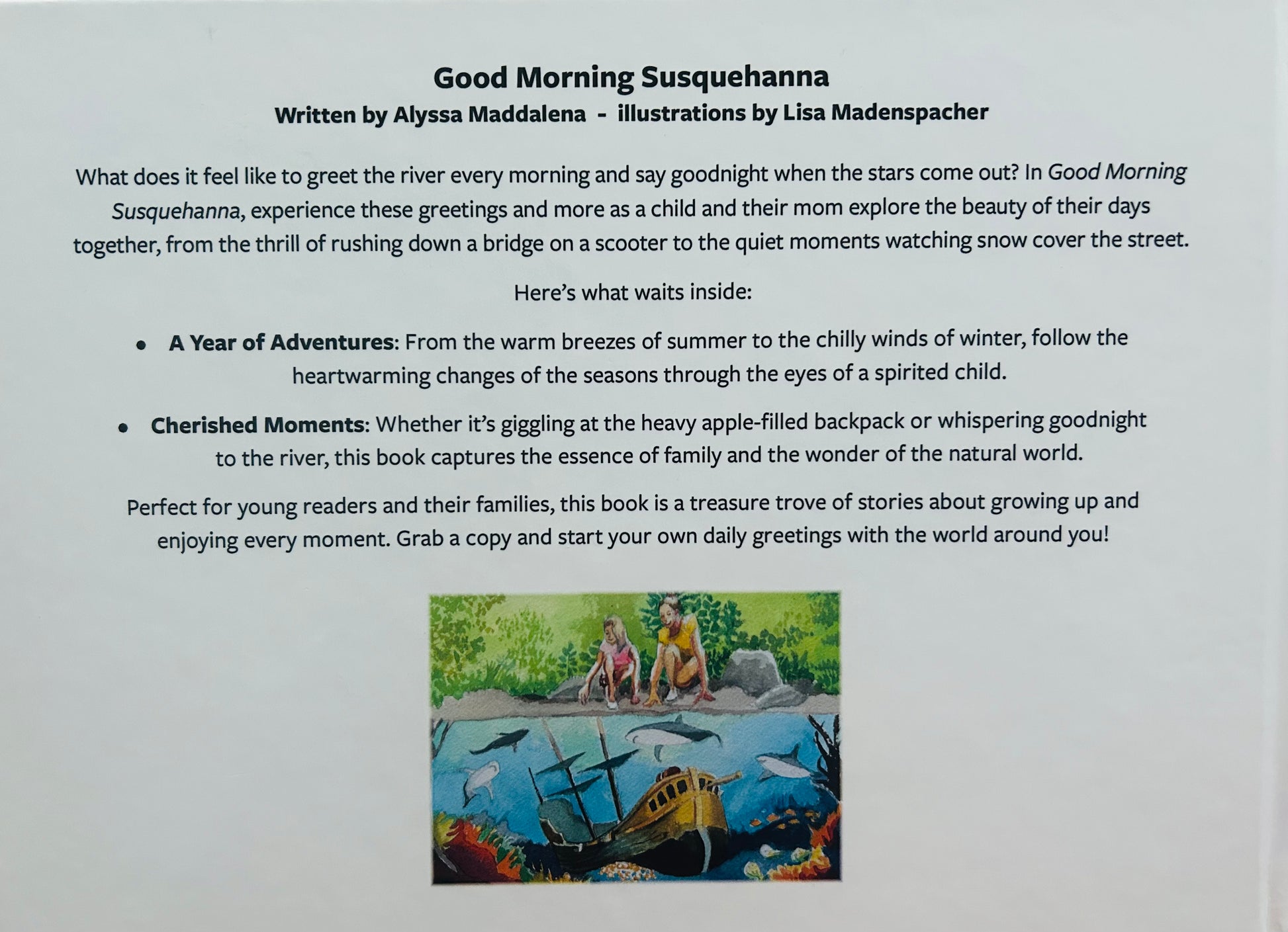 Dive into the pages of Good Morning Susquehanna and join a young child and their mom in a series of fun, everyday adventures that span across the seasons. Each day brings a new chance to say hello to the local river, and every experience is a discovery of the simple joys of life.